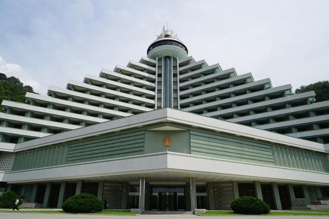 科技感是朝鮮建筑的一大主題。其中最著名的當(dāng)屬這座高105層、330米的柳京飯店,它的外形神似即將飛往太空的航天器。1987年開工,三十多年后的今天卻仍未被啟用,成了目前世界上最高的、也最令朝鮮尷尬的空置建筑。