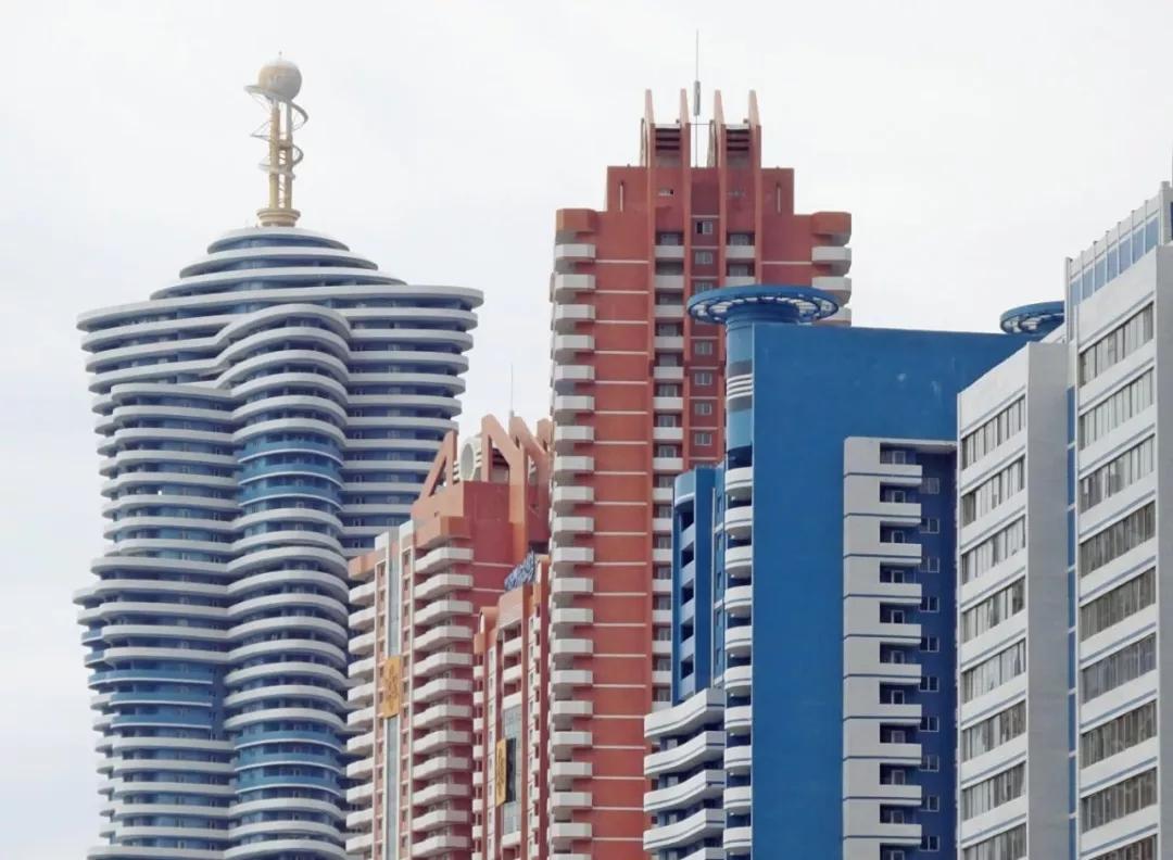 除了XXXL號的建筑外形,在配色上,金正恩也偏愛柔和清新的“馬卡龍色調(diào)”。無論是巨型公共建筑還是普通居民樓,無論是室內(nèi)還是室外,都被粉刷上了藍(lán)、橘、粉、綠的涂料。