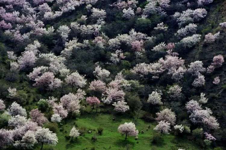 「我們 」·小貼士:大西溝杏花拍攝路線,連霍高速公路過賽里木湖,過果子溝,大西溝出口下高速(出果子溝往霍爾果斯方向行駛),沿縣道指示前行二十多公里到達景區(qū)大門,可以用導航目的地設置為:大西溝福壽廟。