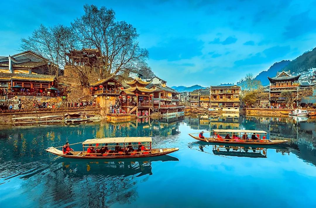 沱江,古城鳳凰的母親河,依城墻緩緩流淌,哺育著世世代代的古城兒女。坐上烏篷船,聽(tīng)著艄公的號(hào)子,看著兩岸已有百年歷史的土家吊腳樓,別有一番韻味。順?biāo)?,穿過(guò)虹橋,一幅江南水鄉(xiāng)的畫(huà)卷便展現(xiàn)于眼前,遠(yuǎn)離塵世的感覺(jué)悠然而生。
