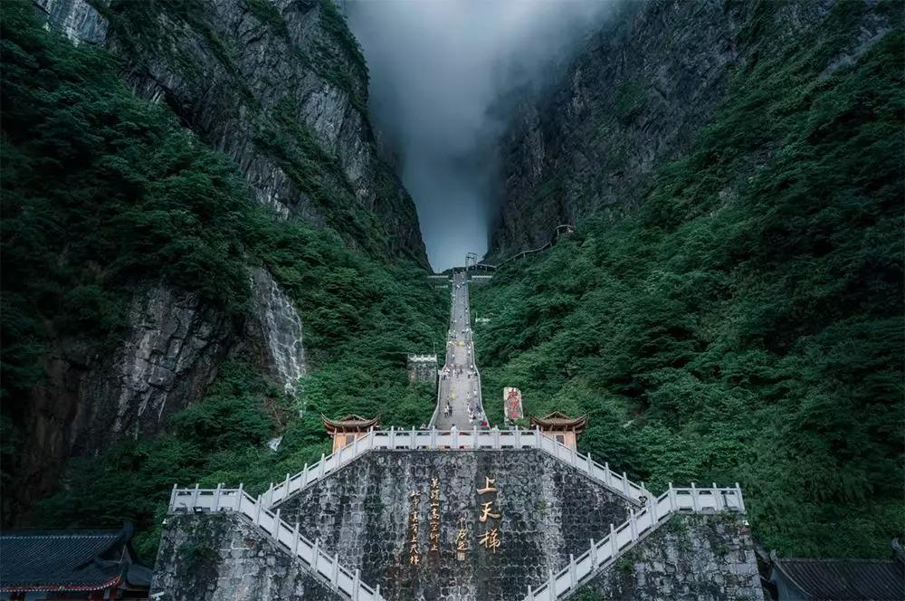 天門(mén)山,位于湖南省張家界市,古稱(chēng)云夢(mèng)山、嵩梁山,因自然奇觀天門(mén)洞而得名。天門(mén)洞南北對(duì)開(kāi)于千尋素壁上,氣勢(shì)磅礴,巍峨高絕。