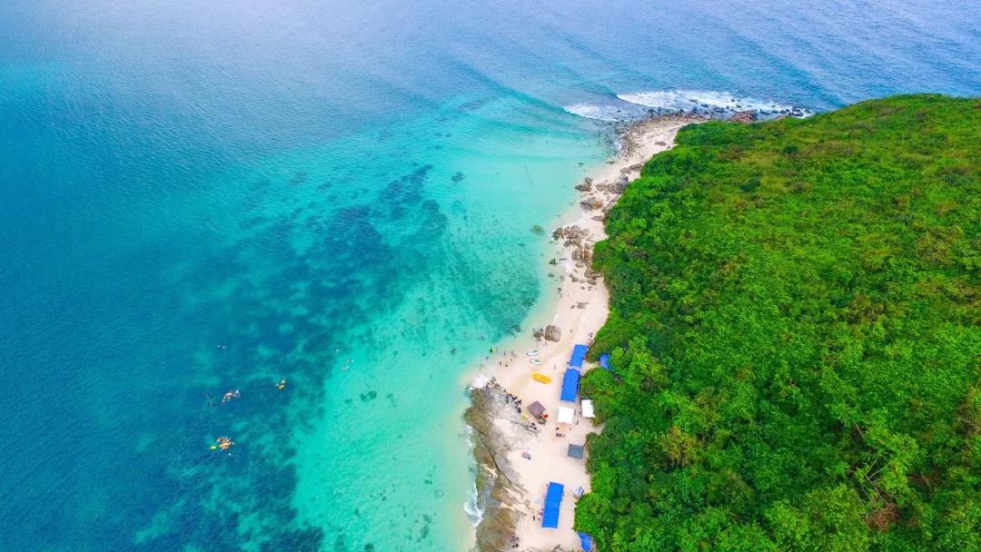 如果說石梅灣是萬寧的一張名片,那么石梅灣內(nèi)的加井島一定可以代表石梅灣。因為是無人島,所以島上保持著原生態(tài)的模樣,上面幾乎沒有人造設施,是潛水的天堂,被稱為“東方的夏威夷”。