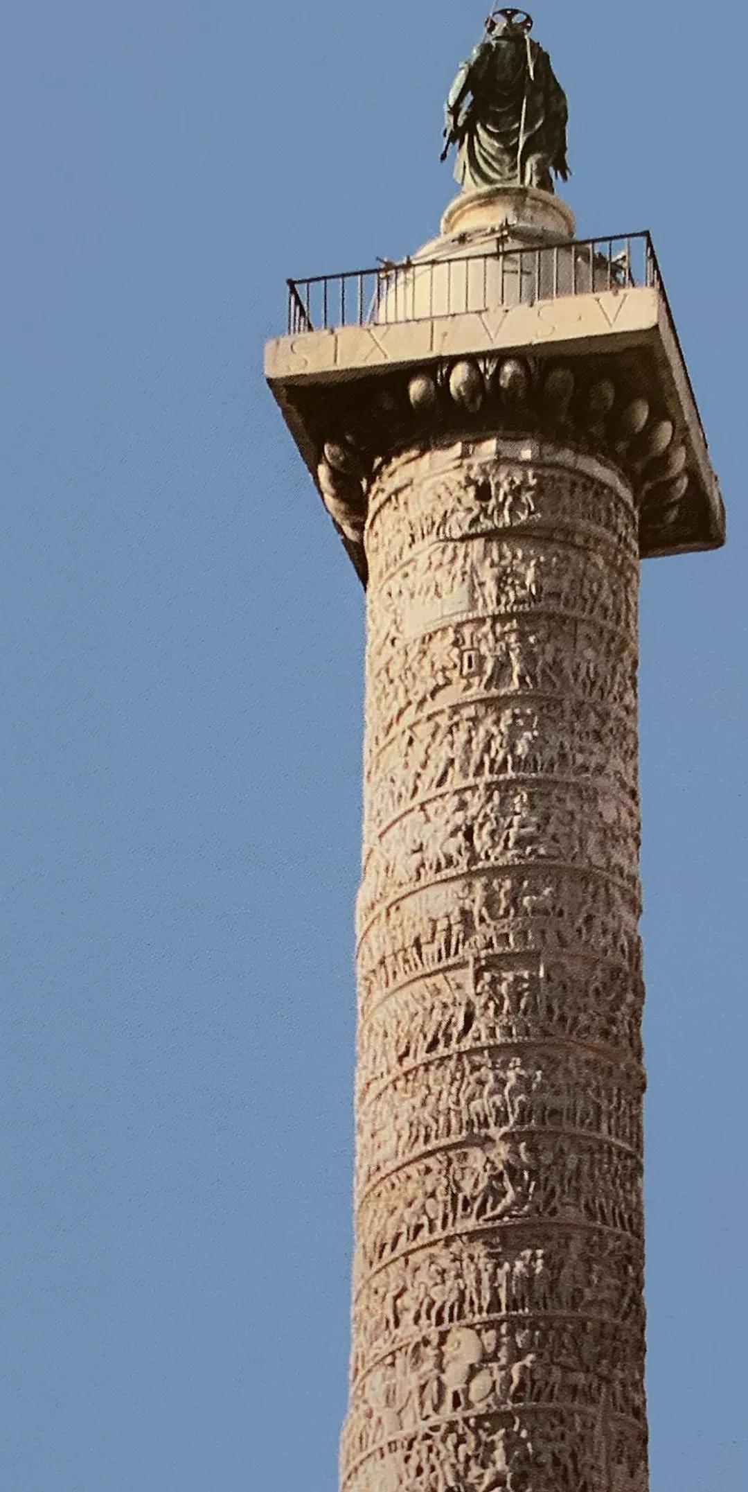 這是一條盤旋上升的石柱,石柱外立面用大理石雕刻著圖拉真的豐功偉績,雕工的精細和奇特的設(shè)計令人贊嘆,你也許要拿著望遠鏡繞著柱子轉(zhuǎn)上無數(shù)圈,才能讀完這位偉大帝王的一生。