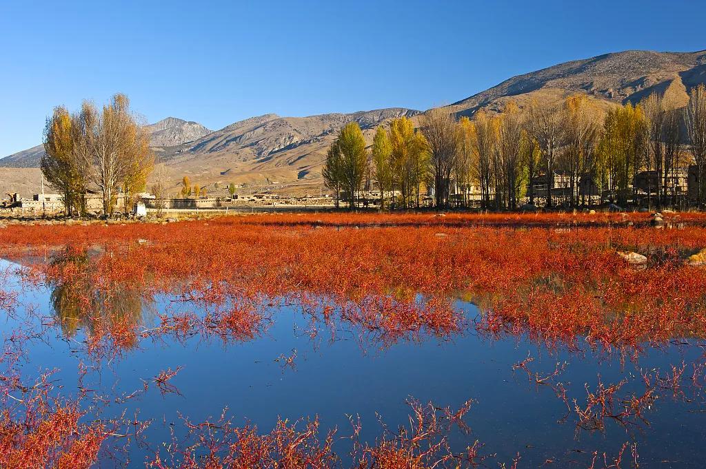 早上從稻城出發(fā),前往桑堆的途中可以停留拍攝紅草地(該景點(diǎn)為季節(jié)性景觀,只有在每年的九月中旬到十一月上旬才能看到紅草),在秋天的時(shí)候,配合上后面泛黃的樺樹,倒映在水塘中,是非常漂亮的一道美景;