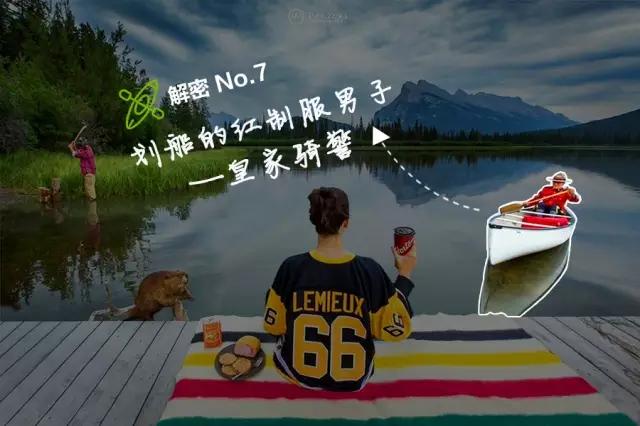 湖面上有一位身著紅色帥氣制服在湖上劃船的男子,他是誰(shuí)呢?原來(lái)是加拿大國(guó)家象征之一:皇家騎警(RCMP)。他表達(dá)出了加拿大人對(duì)落基山戶(hù)外探索精神最崇尚的無(wú)限崇尚。