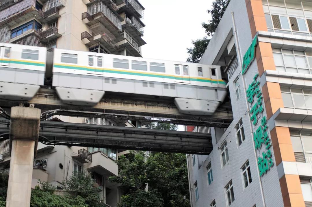 在山城重慶,軌道隨山勢(shì)蜿蜒,其中最急的彎道當(dāng)屬2號(hào)線平安站到大渡口站段,約90度的彎道,如過(guò)山車一般驚險(xiǎn)刺激。