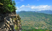 索道站觀賞峽谷中的百里絕壁、千丈懸崖、絕壁棧道、傲嘯獨峰、原始森林、遠古村寨、大峽谷梯田等景點美不勝收,(下山手扶電梯,自理);