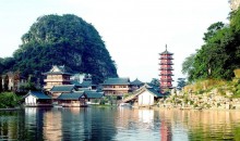 游覽漓水環(huán)繞的AAAA級【訾洲·象山】(60分鐘),柳宗元游覽訾洲后曾寫下《訾家洲亭記》頌揚桂林山水。訾洲觀景臺是觀賞城徽象鼻山的最佳角度,東可望七星山、穿山、塔山,西可觀疊彩山、伏波山、獨秀峰、雉山、南溪山、斗雞山;若恰好是在煙雨彌漫的時節(jié)游覽,云紗霧幔將訾洲籠罩在一片朦朧之中,猶如一幅水墨畫卷,充滿詩情畫意,這就是譽滿八桂的“訾洲煙雨”美景;