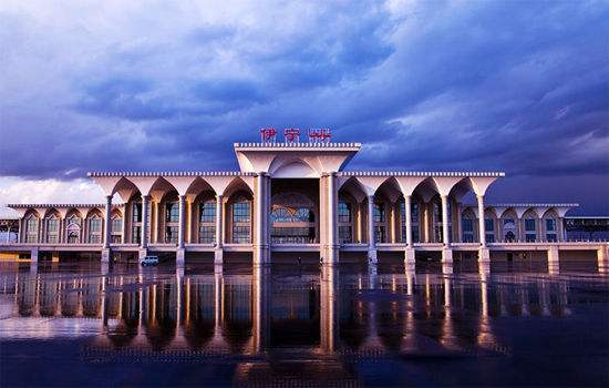 火車位于伊寧市西北,距市中心6千米。占地面積280公頃,其中站房建筑面積1.2萬平方米,站前廣場2萬平方米。由貨場、站房、綜合維修中心、機(jī)務(wù)段、客車技術(shù)整備所、站修所等部分組成;預(yù)留集裝箱貨場、站場,設(shè)8條股道,4條貨場裝車線。旅客吞吐量1500人/天,屬中型鐵路旅客車站。