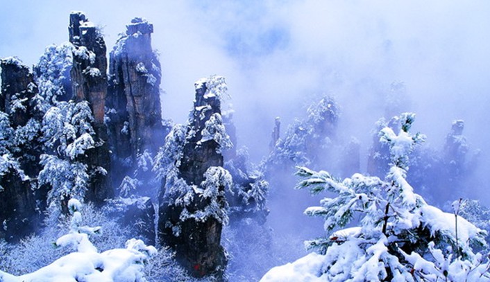 天子山還有云霧、月夜、霞日、冬雪四大奇觀。云霧,是天子山最多見的天象奇觀。有云霧、云海、云濤、云瀑和云彩等景象。久雨初晴之后或霏霏細雨之中,先是朦朧大霧,繼而形成白云,環(huán)繞飄浮。群峰在無邊無際的云海中時隱時現(xiàn),使人仿佛置身于蓬萊仙境之中。有時云霧從溪口涌出,爬過峰頂,然后以鋪天蓋地之勢,飛瀉而下,形成云瀑,十分壯觀。月夜,當月明星稀,萬籟俱寂時,這里的峰林被朦朧月色披上了一層“魔紗”,似一群群魔影聳立在幽谷之中。耳聞禽獸嚦嚦的叫聲,使人產(chǎn)生一種神秘感。霞日,晴天的早晨,一輪紅日在朵朵紅云的襯托下,從奇山異峰中冉冉升起。千萬座石塔,婷婷玉立,披上一層紅霞,十分迷人。冬雪,入冬,天子山銀裝素裹,青松和峰頂被大雪覆蓋。此時的天子山冰柱倒立,冰花四散,只有一些山鹿、野豬,才不為銀白世界所征服。