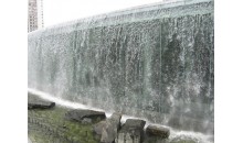 廣州火車東站及其廣場位于新城市中軸線的北段,東站綠化廣場以大面積的綠地營造了一個大尺度的環(huán)境空間效果,配以精致的花壇、雕塑、水景,體現(xiàn)了廣州現(xiàn)代化國際城市的都市風(fēng)采。長89米、高8米的玻璃墻構(gòu)成了水景瀑布的依托,流水從高平臺溢出,順玻璃墻瀉入水池,各色燈光不斷變幻將瀑布映得五顏六色。