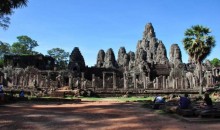 巴戎廟 位于柬埔寨暹粒,吳哥城內(nèi)最為出名的要數(shù)巴戎廟中的佛塔了,巴戎廟位于吳哥城的中心位置,巴戎廟是由一組共49座小寶塔圍繞中央尖塔構(gòu)成的建筑群,這些塔在佛語里又被稱做浮屠,每一座塔的四面都雕刻著巨大的佛面,也正因?yàn)槿绱?,這些塔又被稱作佛面塔,上面的佛被稱為四面佛。