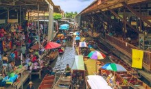 在泰文的意思是『賓至如歸』,當(dāng)年的泰皇拉瑪五世微服出巡到此,不知情的村長一樣熱情的款待,讓五世皇深受感動,于是便以Damnnoen Saduak命名,也為水上市場帶來了百年的豐盈。