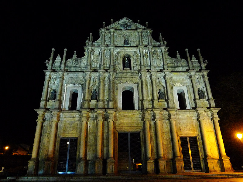 圣保羅教堂建成于1637年,整座教堂體現(xiàn)了歐洲文藝復興時期建筑風格與東方建筑特色的結合,是當時東方最大的天主教堂。1835年,圣保羅教堂被一場大火燒毀,僅殘存了現(xiàn)在的前壁部分。因為它的形狀與中國傳統(tǒng)牌坊相似,所以取名為“大三巴碑坊”。