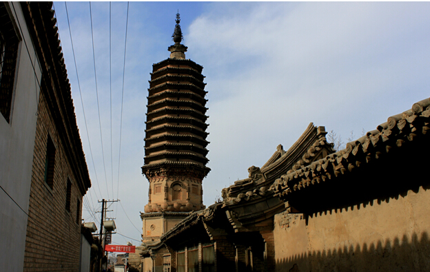 華嚴寺,全國重點文物保護單位,建于明洪武三十二年(1399年),清初順治年間改稱崇教寺,俗稱下華嚴?,F(xiàn)占地3400平方米,自南向北有前、后殿,兩側(cè)有東、西配殿。前殿面闊進深各三間,單檐歇山布瓦頂,檐下施五踩斗拱,梁架為五架梁,前、后各出單步梁,內(nèi)施天花,繪有精美的龍鳳圖案。