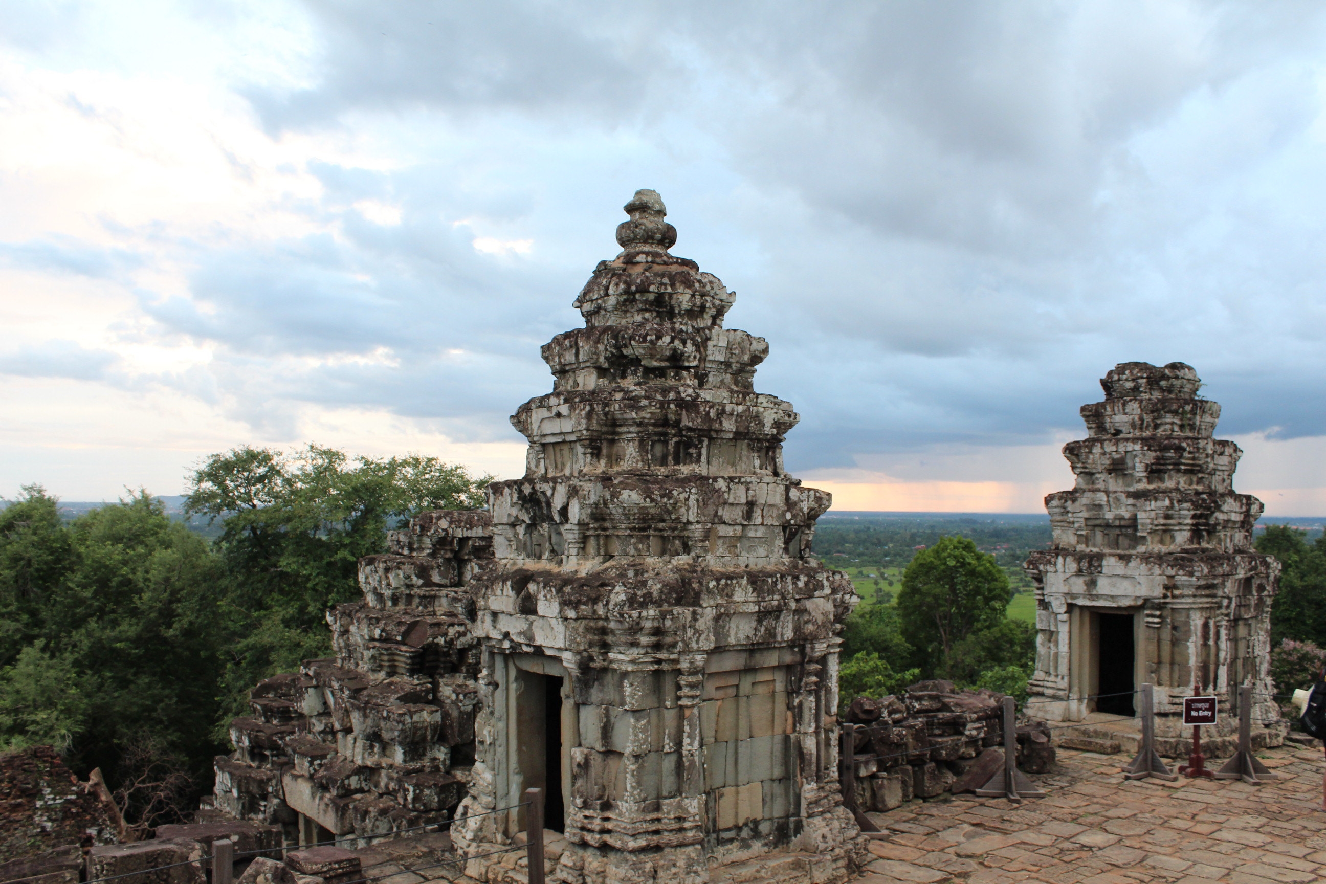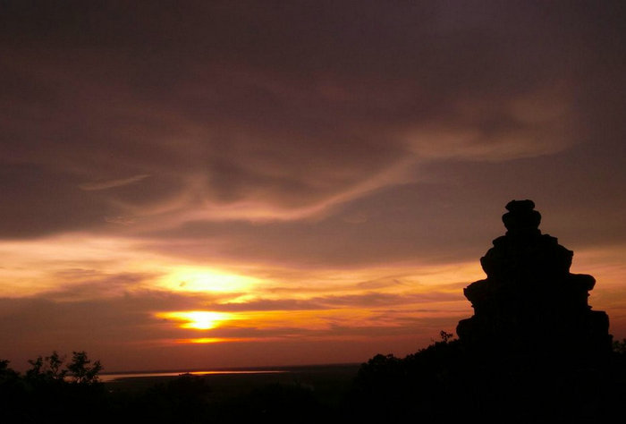 無論選用何種途徑,步步為營從狹窄和陡峭的階級攀上廟宇頂則無可幸免。廟宇經(jīng)過歲月的洗禮,已不見昔日的風(fēng)采,但廟宇頂部的平臺可從高處遠眺吳哥窟。每逢晴天的黃昏日落時分,很多游客會來到山上欣賞吳哥日落,追憶這個失落的文明。由于這兒是看日出日落的寶地之一,每天臨近傍晚都會擠滿了游客和小販,熱鬧得象個公園。
