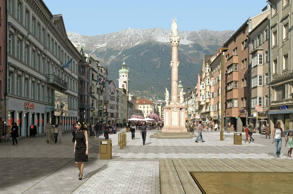 因斯布魯克建立于1239年。這座美麗的小城坐落在阿爾卑斯山谷之中,旁邊流淌著因河。 奧地利的高山,就跟她的音樂一樣,是世界知名的。蒂洛爾州則是阿爾卑斯山的心臟。無論是在因斯布魯克的哪一個(gè)角落,都能見到白雪覆蓋的山巒。因?yàn)楸泵姹簧矫}遮擋,所以因斯布魯克氣候宜人,是國際旅游的勝地。