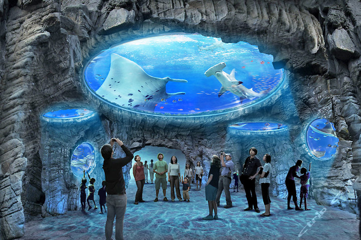 海洋館是世界最大的水族館之一。水體寬22米,長38米,水深達(dá)7米,分為4層,觀眾可由通道環(huán)繞參觀。該館按珊瑚礁布局,分深湖和瀉湖兩部分:深湖依據(jù)堡礁設(shè)計,瀉湖參照緣礁摹造,兩湖海水相通。館內(nèi)放養(yǎng)了太平洋島嶼及南中國海魚類5000多條,約400多種,從體長不到2厘米的鹽雀鯛到身長3米的豹紋鯊,還有海鰻、神仙魚、石斑魚等各種珊瑚礁魚類。該館還設(shè)有“珊瑚和珊瑚礁”展覽,介紹有關(guān)珊瑚礁的形成。