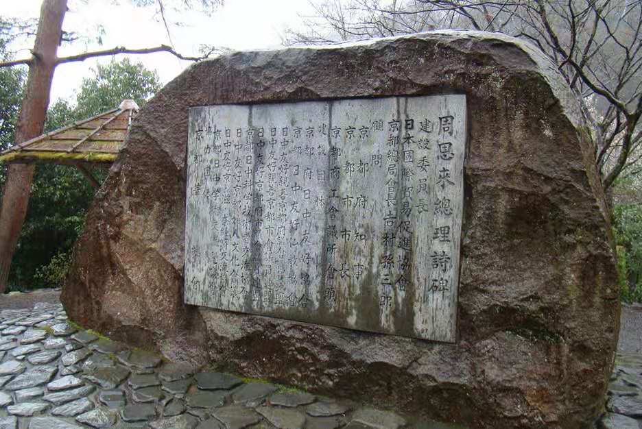 1917年9月,周恩來(lái)東渡日本留學(xué)。1919年4月在回國(guó)途中,他游覽了京都,并撰寫(xiě)白話詩(shī)四首。1979年1月22日,由京都各日中友好團(tuán)體和知名人士聯(lián)合倡議,成立了“周恩來(lái)詩(shī)碑籌建委員會(huì)”。1979年4月16日,詩(shī)碑建成。