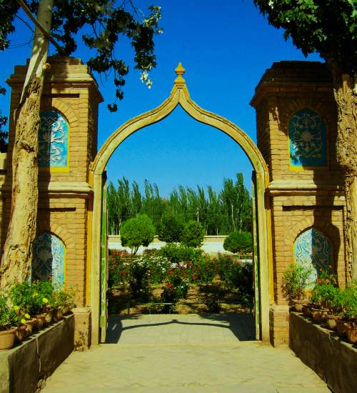阿帕霍加墓與香妃墓坐落在喀什市東郊5公里處的浩罕村,是一座典型的伊斯蘭教式的古建筑群。陵墓始建于1640年前后。據(jù)說(shuō)墓內(nèi)葬有同一家族的五代72人。因其中葬有明末清初喀什著名伊斯蘭教“依禪派”大師阿帕霍加而得名。阿帕霍加是墓中第二代人,曾一度奪得葉爾羌王朝的世襲政權(quán),更成為17世紀(jì)“依禪派”伊斯蘭教的首領(lǐng),名望遠(yuǎn)遠(yuǎn)超過(guò)其傳教大師的父親。