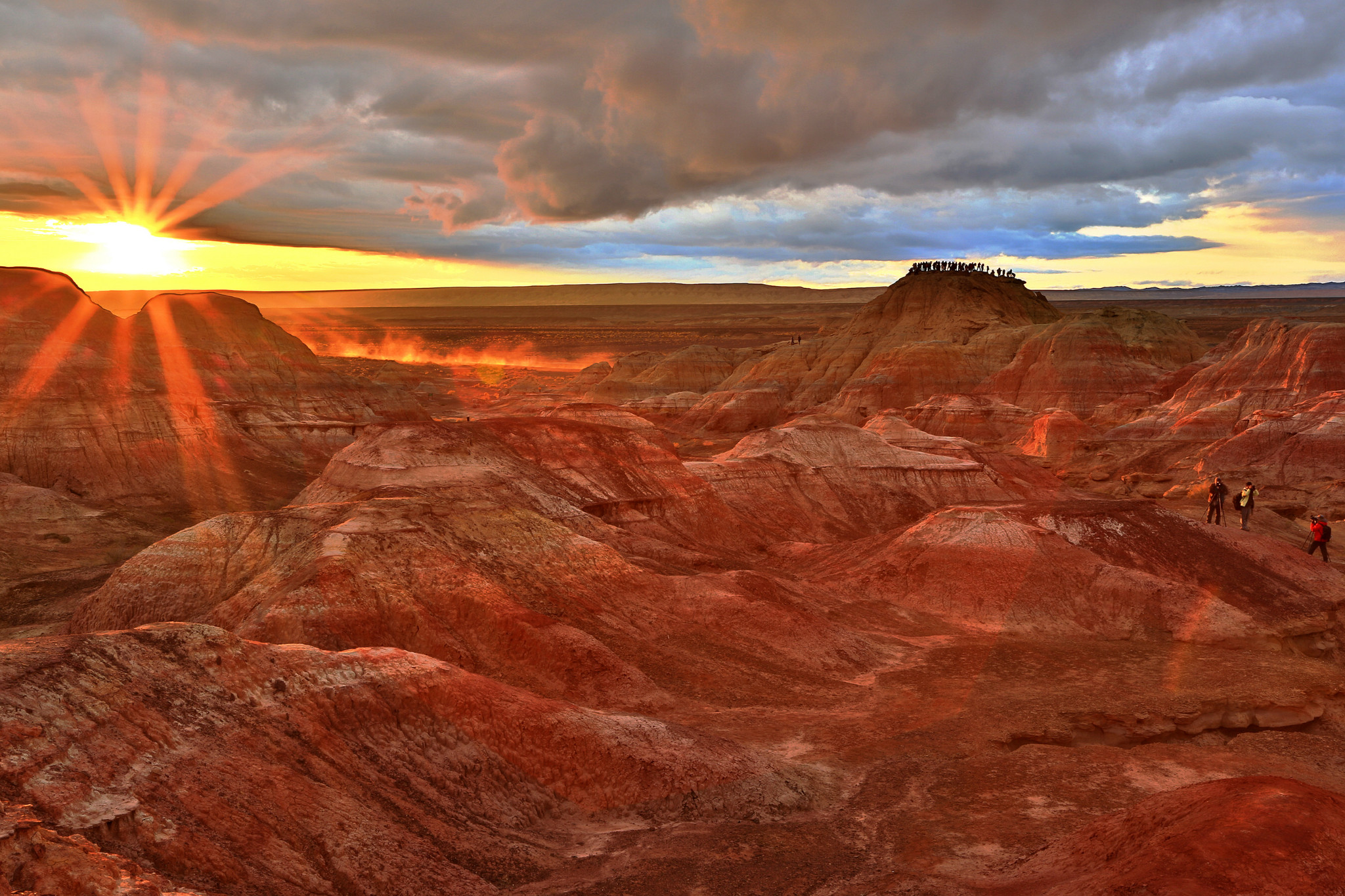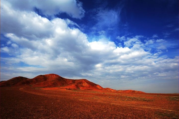準(zhǔn)葛爾盆地,是我國的第二大盆地,被稱為“史前地質(zhì)博物館”。這里有美麗的五彩城,有大片的硅化木和恐龍化石。距離烏魯木齊約250公里,位于準(zhǔn)噶爾盆地東南部的火燒山便是其中一景?;馃胶突鹧嫔讲煌鹧嫔揭驕囟雀叨劽煜?,而火燒山是因?yàn)槠渖襟w顏色而聞名。