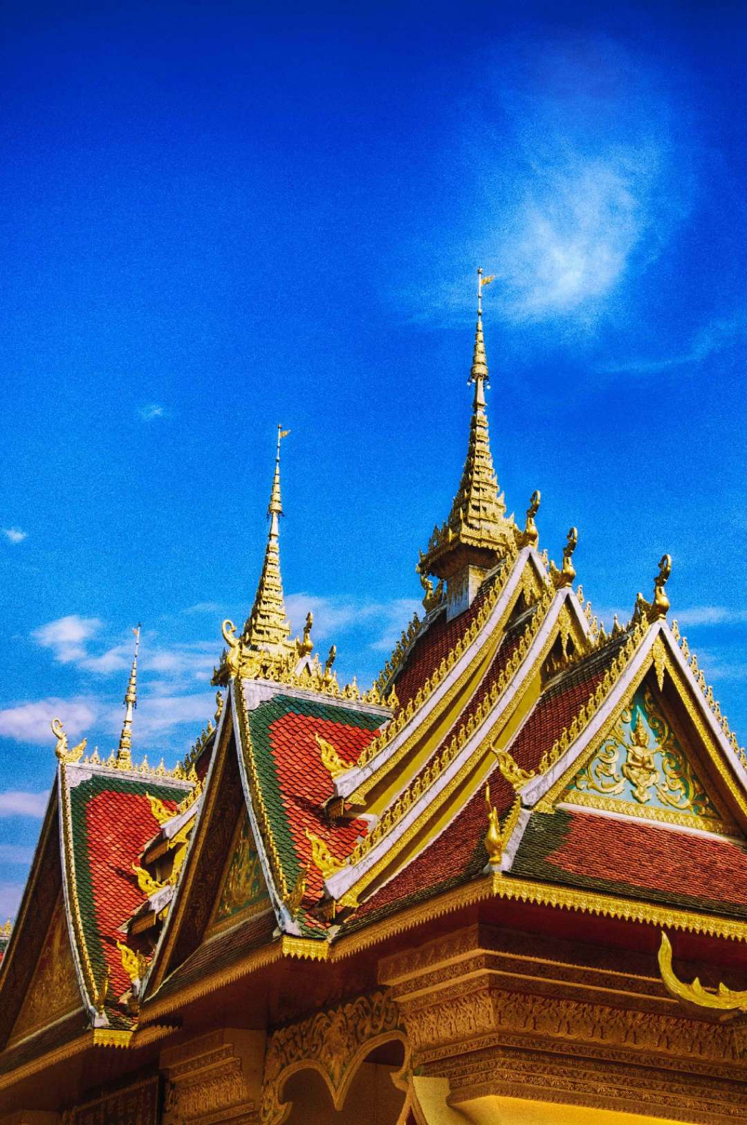 西雙版納傣族佛寺建筑,以重檐多坡面平瓦建筑為主。佛寺大多成方形,坐西朝東,屋頂坡面由三層相疊而成,中堂較高,東西兩側遞減,交錯起落。屋頂使用長方形片瓦,瓦尾鉤在平形的竹制橫椽之上。屋頂正脊及檐面之間的戧脊,用石灰抹平,上面排列各種瓦飾。正脊上的那瓦飾呈火焰狀,戧脊首端大多豎有鳳的形象,風格獨特。各佛寺佛殿內(nèi)部由佛座、僧座和經(jīng)書臺3部分組成。佛座上塑的釋迦牟尼像,大多是坐像,佛祖的耳朵奇特,又大又寬,成“<”形。身材瘦削,眉清目秀,雙手扶膝,流露出一種神秘的氣氛,使人產(chǎn)生對傣族歷史追溯的好奇心。