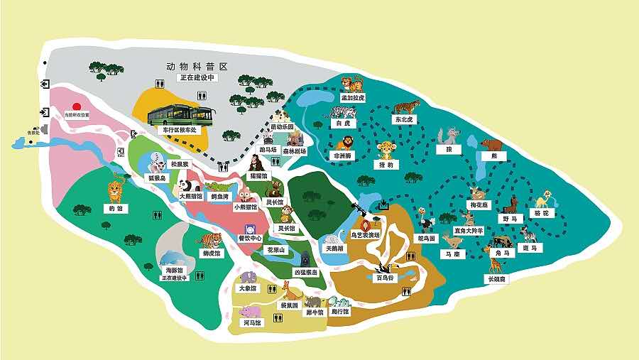 線路一:大門入口→步行區(qū)→豹館→大象馴化(10:00)→爬行動物館→百鳥樂園→靈長類動物館→小熊貓館→鱷魚館→大熊貓館→節(jié)尾狐猴島→車行區(qū)→游園結(jié)束