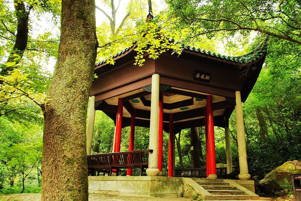 2、岳麓山南大門-五輪塔-半山亭(休息)-麓山寺-白鶴泉.笑啼巖-蔡鍔墓-黃興墓-長廊-極目山莊-索道