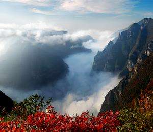 上升峰海拔高度780米。位于神女溪東岸6公里處,七里塘東側(cè)。上升峰山勢險峻峭拔,尖峰高突,巍然屹立。其一角斜上,飄飄欲飛,直上云霄,猶如巨鳥飛升九天。因此得名上升峰。又因峰形似鯤鵬展翅,扶搖直上,當(dāng)?shù)匕傩沼址Q它為老鷹巖。到達(dá)上升峰頂,可以遠(yuǎn)看萬里長江,截斷巫山云雨,一水奔騰,萬峰峭拔。還可看到大寧河從莽莽群峰間穿行,猶如飄在群山間的銀帶。