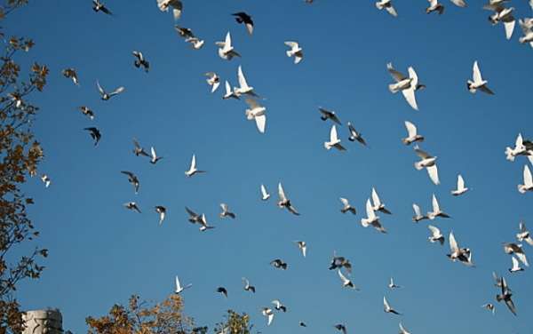 人鴿共處,禽情親情,水乳交融,呈現(xiàn)一派歡樂祥和的景象。
