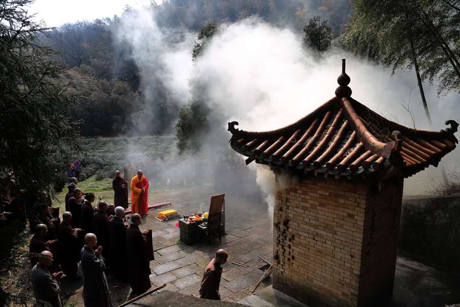 不久,法海禪師行單上的苦行生活圓滿結(jié)束,開始三年的閉關(guān)修行。各類勞作外緣均通身放下,一心參禪。三年圓滿時,不開關(guān)門,師父靈佑禪師親自到關(guān)門外直呼“法?!敝6U師在關(guān)中應(yīng)聲而出,關(guān)房門窗毫無損壞,是圓滿得道的標(biāo)志。一時間,合寺內(nèi)外僧俗大眾皆來親近問道,為避俗諱,乃受師命,游歷江西廬山等地,終至江蘇鎮(zhèn)江氏俘山的一片荒林中駐錫禪修。時隔不久,由當(dāng)?shù)匦疟娬f明,乃知氏俘山中自己的駐地于東晉時曾建過名為澤心寺的道場。在密林的荒煙蔓草間,禪師居然尋獲到已被毀壞的殘佛,于是,法海禪師燃燒一節(jié)指,誓愿重修道場,為眾生樹立伽藍(lán)。于是開山挖田,刻苦勞作,漸漸贏得當(dāng)?shù)孛癖娭С郑_始建設(shè)寺院。
