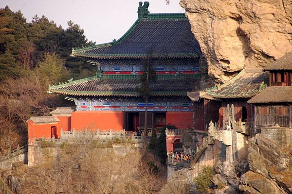 元至元二十二年至泰定五年(1285~1328年)在山中大建宮觀,南巖宮是其一?,F(xiàn)僅存宮中石殿,石雕仿木結(jié)構(gòu),殿內(nèi)有“天子臥龍床”組雕和“三清”塑像,四面環(huán)立500鐵鑄靈官塑像,均生動(dòng)逼真。殿外遠(yuǎn)近有疊字峰、金鼎峰、滴水崖、崇福崖、白龍?zhí)兜葎倬?,更有仙山樓閣之妙。版權(quán)所有山東聊城聊之旅國際旅行社有限公司,轉(zhuǎn)載必究!殿外崖前有雕龍石柱,橫出欄外2.9米,寬僅30多厘米,上雕盤龍,龍頭置一小香爐,俗稱龍頭香。石殿右下方崛起一峰,上建梳妝臺(tái)、飛身巖、相傳為“真武”舍身成仙之所。