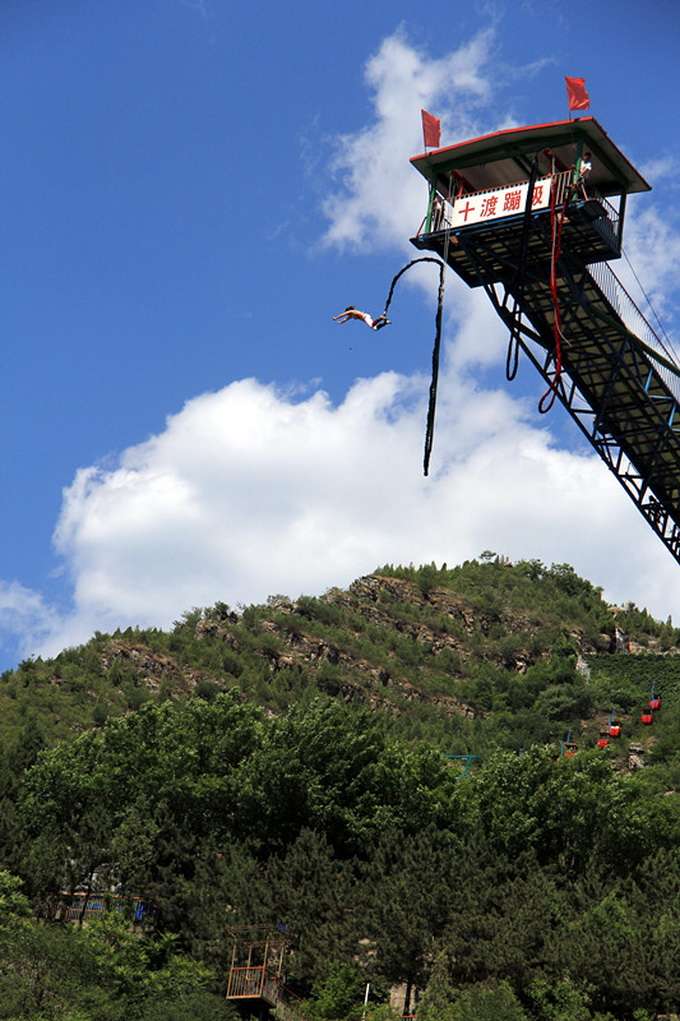 北京拒馬娛樂有限公司開時尚風氣之先,第一個將勇敢者的游戲——蹦極跳引入中國,落戶十渡,引發(fā)了全國范圍內的蹦極熱,被譽為“十渡蹦極,神州第一”,尤其是一處雙臺蹦極,更是世界第一。。版權所有山東聊城聊之旅國際旅行社有限公司,轉載必究!迄今為止公司已安全接待勇敢者10萬余人次,并于2000年7月12日-14日成功的舉辦了由國家體育總局、登山運動管理中心主辦,北京拒馬娛樂有限公司承辦的首屆全國高臺蹦極邀請賽,這是迄今為止世界上規(guī)模最大、參賽人數最多、參賽范圍最廣、比賽層次最高的一次蹦極賽事。