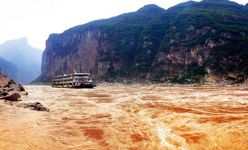 三峽的大門。西起重慶奉節(jié)縣的白帝城,東至巫山縣的大溪鎮(zhèn),全長(zhǎng)8公里。這里河寬只有百余米,把滔滔大江緊束得像一條溝壑,而通過的流量往往多達(dá)每秒五、六萬立方米?!氨娝畷?huì)涪萬,瞿塘爭(zhēng)一門”,杜甫用一“爭(zhēng)”字,活畫出夔門的赫赫水勢(shì)。當(dāng)輪船駛出瞿塘峽西口后,您走到船尾,抬眼望去,全景式的夔門雄姿便展現(xiàn)在您的面前。這時(shí)是攝影留念的最佳角度。如今,臨江的石壁上,還刻有孫元良的“夔門天下雄,艦機(jī)輕輕過。