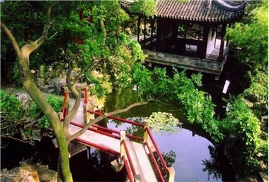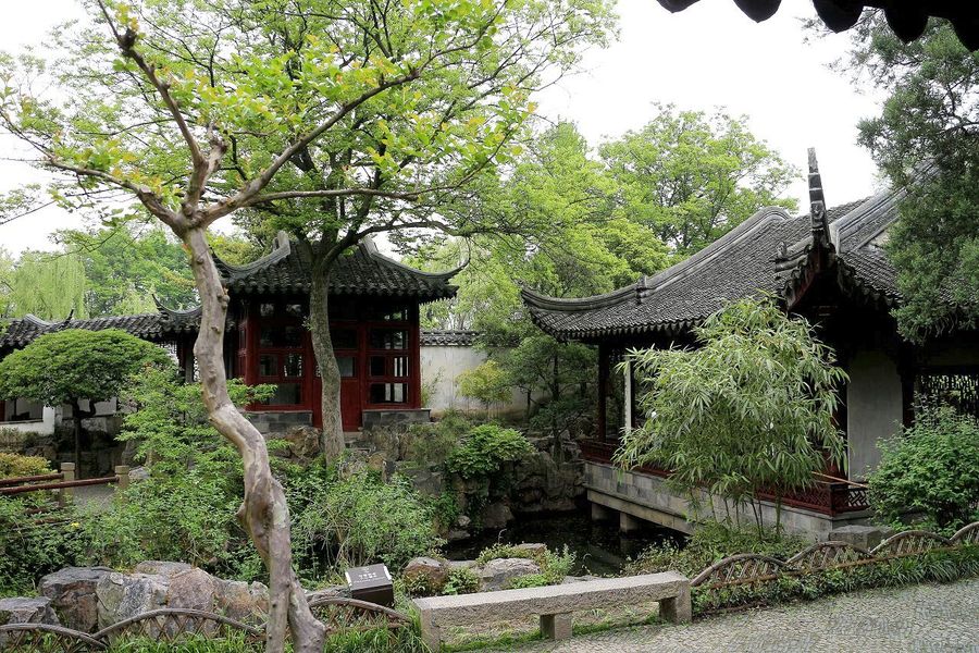 西花園環(huán)境幽雅寧?kù)o,具蘇州書(shū)齋花園的特色。