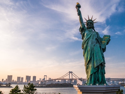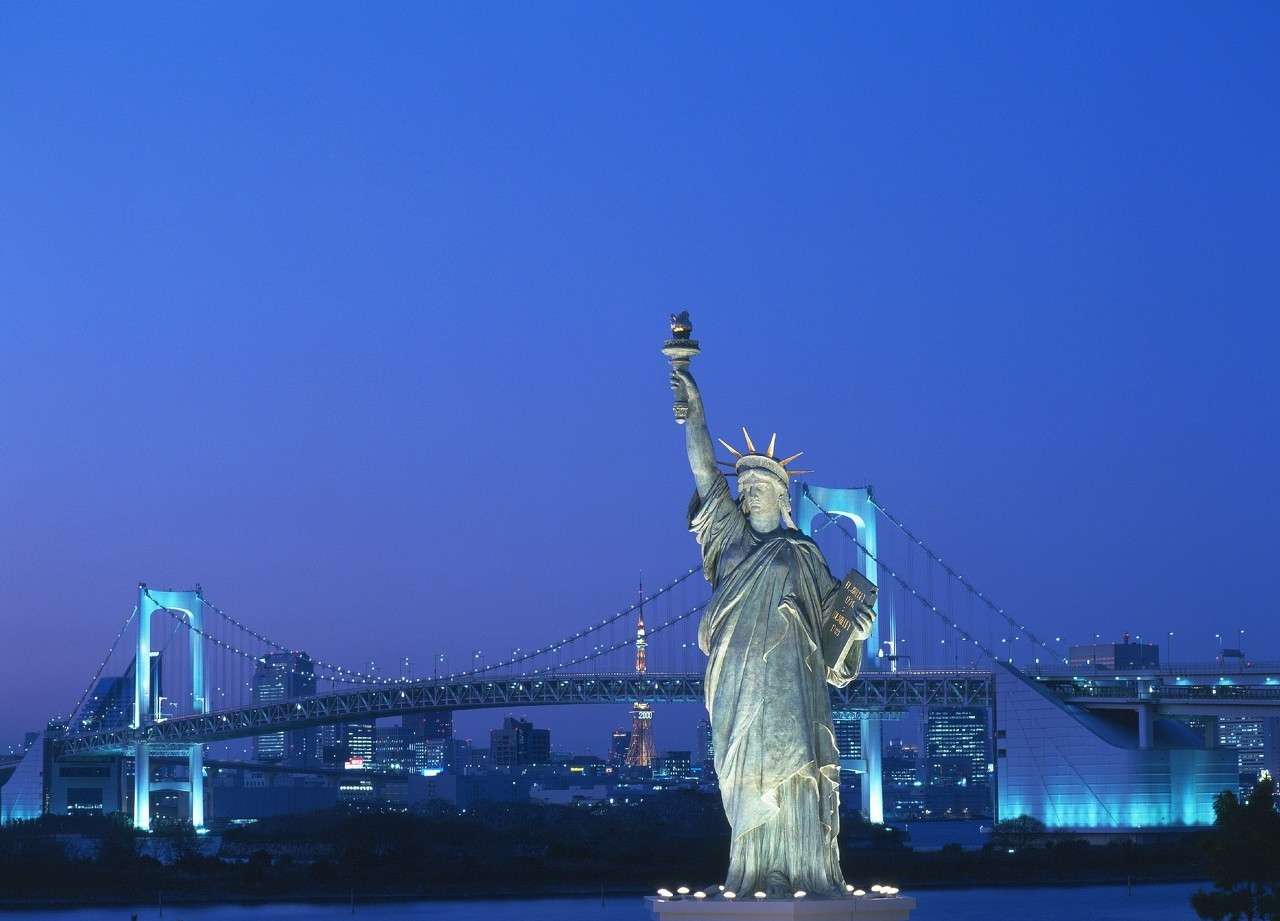 現(xiàn)在設置在臺場的自由女神像,是原物歸還后,在回應一片惋惜聲中制作的復制品,雖然如此,現(xiàn)在她已變成臺場的標志。以彩虹大橋為背景,與女神一起合影留念是不可缺少的活動項目了。