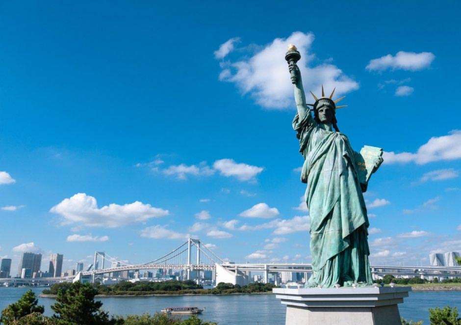 東京的自由女神不僅形象和美國的那座一模一樣(當然尺寸要小得多),連周圍的景致也很相像——如果不是因為有彩虹橋這座標志性建筑作背景,版權所有山東聊城聊之旅國際旅行社有限公司,轉載必究!神像身后的港灣簡直跟哈德遜河沒什么兩樣;東邊不遠處的兩幢高樓,更是猶如雙子塔再生,一時真有“錯把東京當紐約”之感??吹秸掌呐笥褌?,他們一致感嘆:日本不愧是美國的好跟班兒??!