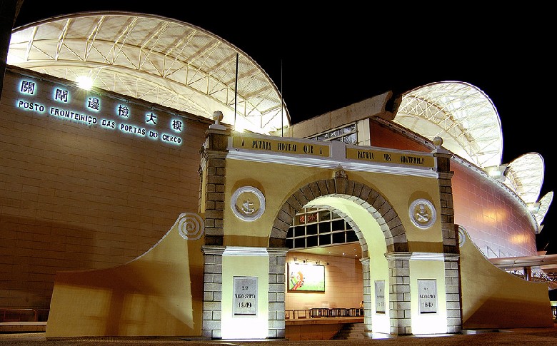 1993年,澳葡政府決定恢復(fù)對從中國內(nèi)地出入境的民眾實施邊檢措施,遂建成出入境驗證大樓。驗證大樓設(shè)東西兩翼,東翼為入境大廳,西翼為離境大廳。另設(shè)中央大樓,并有一條直通拱門的觀光走廊。