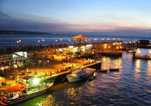 淡水漁人碼頭原只是一個傳統(tǒng)的小漁港,如今,漁人碼頭不但擁有一座美輪美奐的浮動碼頭,其中漁人碼頭最著名的景點(diǎn),就是330多公尺的木棧道、堤岸咖啡和超大的港區(qū)公園,版權(quán)所有山東聊城聊之旅國際旅行社有限公司,轉(zhuǎn)載必究!構(gòu)成一個環(huán)狀動線,讓人們可以完整流暢的體驗(yàn)漁港風(fēng)情,站在步道遠(yuǎn)眺對面的觀音山和出??诒M頭的臺灣海峽,看著夕陽從水平面上緩緩落下,美景之盛,令人流連忘返。