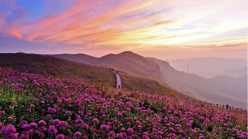 佛光是特殊氣候和地理環(huán)境下形成的光學(xué)現(xiàn)象,天氣驟變而造成較大水汽時,光線遇到這些水汽產(chǎn)生折射,才會形成佛光。在中國境內(nèi),僅在峨嵋山、梵凈山等少數(shù)地方出現(xiàn)過類似自然奇觀。烏蒙大草原佛光春、夏、秋三季都會出現(xiàn),出現(xiàn)時間均在下午4點至6點左右,觀看‘草原佛光’,已成為慕名到盤縣觀光旅游的游客的向往。版權(quán)所有山東聊城聊之旅國際旅行社有限公司,轉(zhuǎn)載必究!同時,在烏蒙大草原,一臺臺新安裝的風(fēng)電機組迎風(fēng)而舞,似在歡迎遠方賓客。傍晚的高山草原,風(fēng)車飛轉(zhuǎn),霞光四射,金輝盡染。游客可俯瞰綿延峻嶺,仰望旋轉(zhuǎn)風(fēng)車,體驗高山草原的愜意。