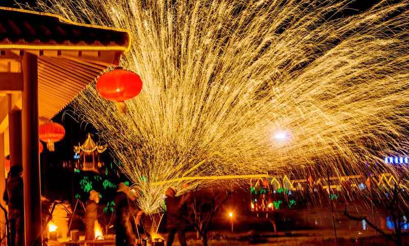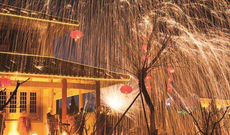 夜幕降臨時(shí)才是文化節(jié)的高潮部分,春節(jié)期間,省級非物質(zhì)文化遺產(chǎn)千年絕技“打鐵花”在司徒小鎮(zhèn)內(nèi)的人工湖廣場精彩上演,民間匠人用熔爐將生鐵熔化成數(shù)千攝氏度的鐵汁,拋起用力擊向天空,朵朵鐵花如天女散花,絢麗奪目,夜空之下,火星璀璨,帶來的是紅火和驚詫,也帶來了希望與憧憬,吸引大量游客前來觀看。最高峰時(shí)期,單日游客量最高達(dá)十五萬人,創(chuàng)造了多項(xiàng)晉城市城區(qū)景區(qū)接待量的新記錄,令周邊游客度過了一個(gè)熱熱鬧鬧的新年。
