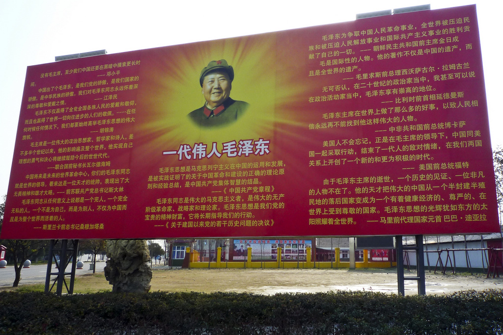 南街人正以豪邁的熱情,在建設(shè)共產(chǎn)主義小社區(qū)的征程上奮進(jìn)。“東方紅太陽升,中國出了個毛澤東……” 早上6點(diǎn)15分,南街村的廣播站開始播放頌揚(yáng)毛澤東的革命歌曲《東方紅》, 毛澤東的雕像如守護(hù)神一樣聳立在南街村的廣場上。廣場上還有“毛澤東思想永遠(yuǎn)放光芒”等大標(biāo)語。南街村新的一天便伴隨這輕快旋律開始。