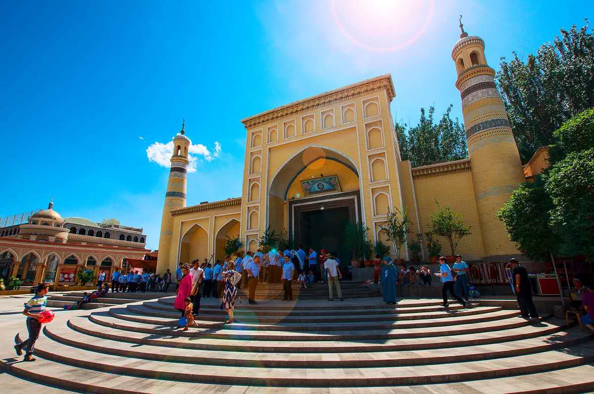艾提尕爾清真寺坐落在喀什市解放北路,是中國最大、最著名的伊斯蘭教清真寺,它以其悠久歷史、雄偉建筑和民族特色聞名中外,在中亞地區(qū)與布哈拉、撒馬爾罕等地的著名大清真寺齊名,已成為絲路明珠—喀什古城的地方象征而名揚中外。1962年7月11日被新疆維吾爾自治區(qū)人民委員會定為自治區(qū)文物重點保護單位。