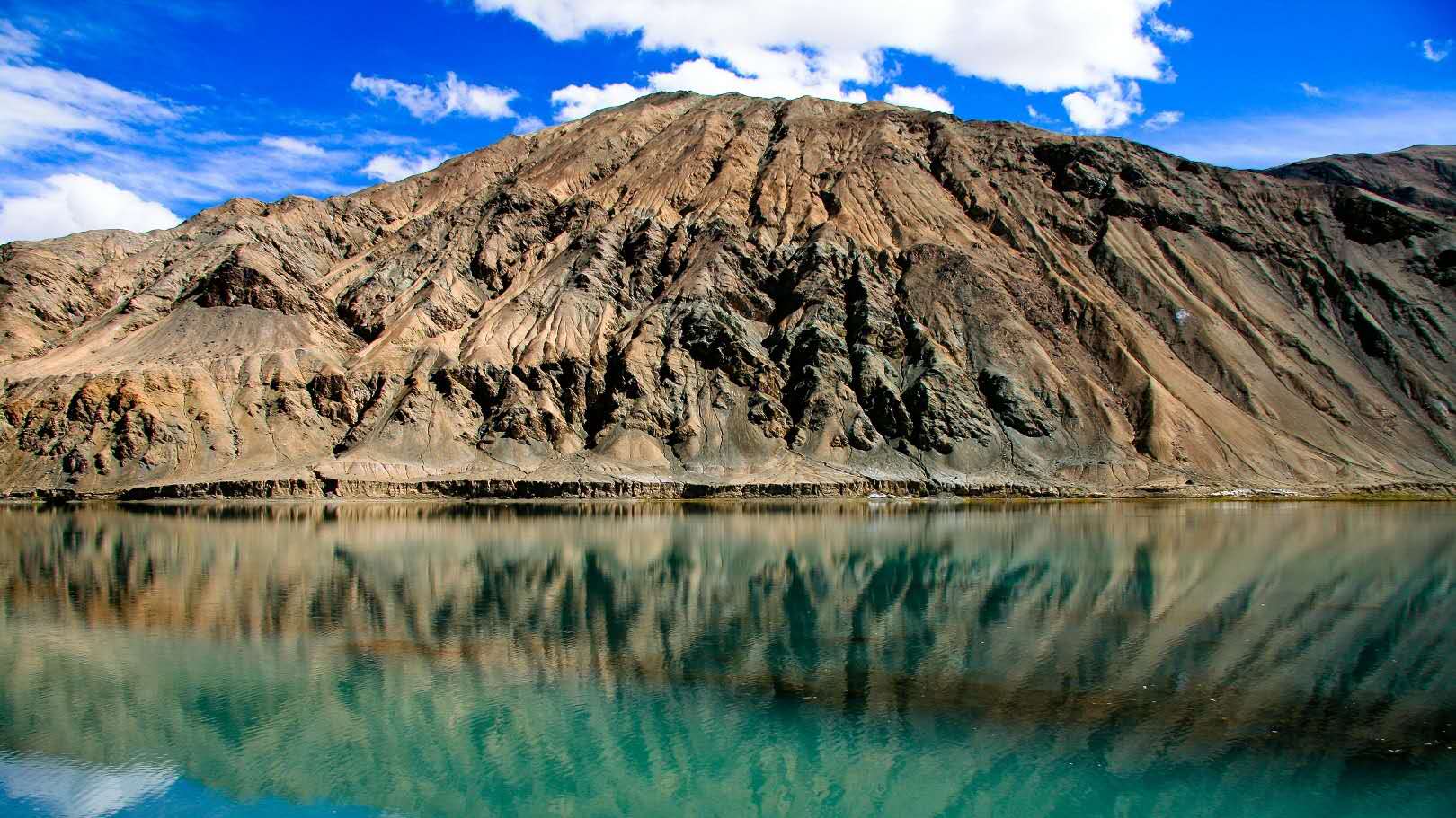 東帕米爾地形較開(kāi)闊坦蕩,由兩條西北—東南方向的山脈和一組河谷湖盆構(gòu)成,絕對(duì)高度5000米~6000米。相對(duì)高度不超過(guò)1000米~1500米,山體渾圓,山脈被寬淺的河谷分割,在海拔4000~5000米高處有冰磧平原和荒漠平原。