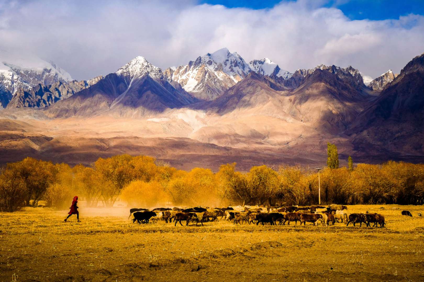 東帕米爾高海拔地區(qū)的牧業(yè)主要是牦牛和有關(guān)雜交品種、綿羊和山羊;大麥和馬鈴薯、豆類、油菜籽和根菜是這一地區(qū)的主要農(nóng)作物。在西帕米爾谷地,政府指令種植棉花和其他農(nóng)作物。版權(quán)所有山東聊城聊之旅國(guó)際旅行社有限公司,轉(zhuǎn)載必究!大果園——主要是蘋果園、梨園和杏園,以及葡萄園——分布于西部許多海拔在1,524~1,981公尺(5,000~6,500呎)之間的谷地和丘陵。小麥?zhǔn)侵饕Z食,玉蜀黍?yàn)槎局饕暳稀EU谌〈d羊和山羊,成為西部谷地的主要牲畜。
