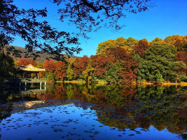 紫霞湖位于明孝陵東北部,是個深藏于山間林海中的人工蓄水湖泊,因與紫霞洞相連而得名。修建于20世紀(jì)30年代中期,由愛國華僑胡文虎捐資建造,用來匯聚鐘山泉水。面積約50000平方米,湖水清澈,周圍林木蓊郁,山青水碧,風(fēng)景佳麗。有“林海中的明珠”、“南京第一無污染湖”之譽(yù)。成為2015年人們避暑納涼的旅游佳地。