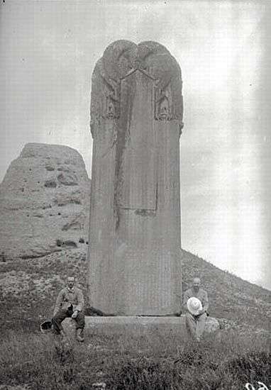 述圣紀(jì)碑位于司馬道西側(cè),與無字碑相對,是武則天親撰、其子唐中宗李顯書丹,是為唐高宗歌功頌德的一通功德碑,北距西闕8.65米。述圣紀(jì)碑記述高宗文治武功,開帝王陵前立功德碑之先例。在乾陵之前,帝王的陵墓不樹碑,墓內(nèi)也不放墓志銘,乾陵突破了這一慣例,因此述圣紀(jì)碑具有特殊的歷史價值。