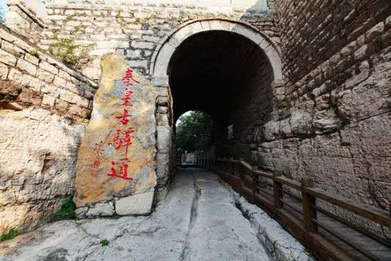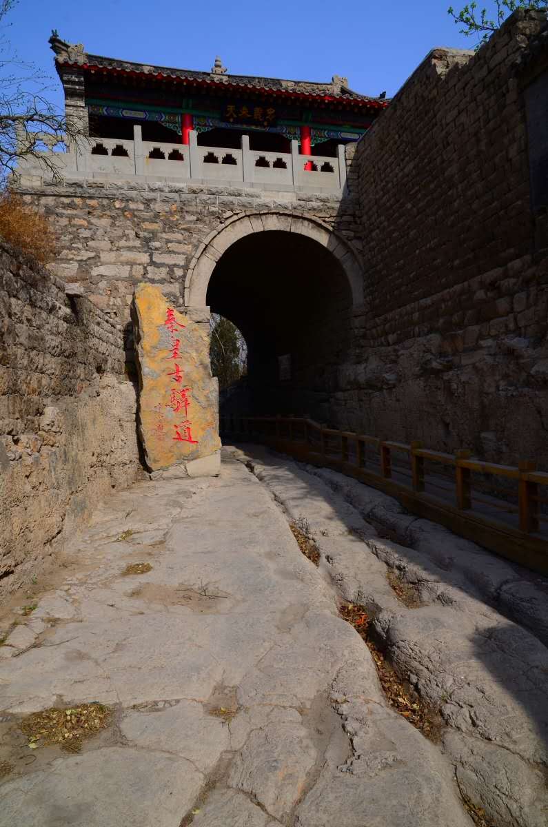 這條古驛道的歷史可追溯到秦代,曾是古代燕趙通向秦晉的交通要隘,控制冀晉兩省的咽喉所在。秦始皇統(tǒng)一中國(guó)后,修筑了以咸陽(yáng)為中心的驛道,井陘古驛道就是當(dāng)時(shí)的主干線上的重要一段。這里關(guān)山環(huán)立,地勢(shì)險(xiǎn)要,是山西、陜西通京的交通要沖,為歷代兵家必爭(zhēng)之地。公元前229年秦將王翦伐趙之戰(zhàn);公元前204年漢將韓信以少勝多的背水之戰(zhàn);公元756年唐將郭子儀、李光弼殲滅叛將史思明、平定安史之亂;公元1900年清將劉光才打響抵抗八國(guó)聯(lián)軍的庚子大戰(zhàn)等等戰(zhàn)例都發(fā)生在這里。秦皇古驛道風(fēng)景區(qū)內(nèi)保留了原始的秦時(shí)馳道,而且可以清晰的在路面上看到古時(shí)車輪碾壓而成的一尺多深的車轍印記,這是“車同軌,書同文”的唯一歷史見證。