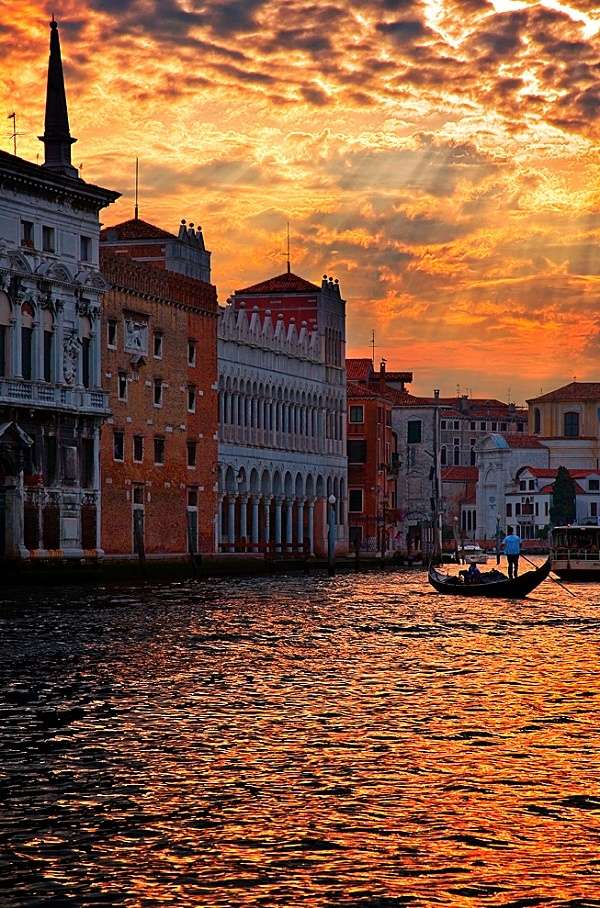 威尼斯大運河被譽為威尼斯的水上“香榭麗舍”大道。在河道的兩邊,散布著各式各樣的古老建筑,既有洛可可式的宮殿,也有摩爾式的住宅,當然也少不了眾多的富麗堂皇的巴洛克和哥特式風格的教堂。文藝復興時代,許多偉大的藝術家都在這些教堂里面留下了不朽的壁畫和油畫作品,至今仍吸引著世界各地的無數(shù)游客和藝術家。此外,遍及運河兩岸的店鋪、市場以及銀行等等,也給這個水上大都市增添了無窮的活力。