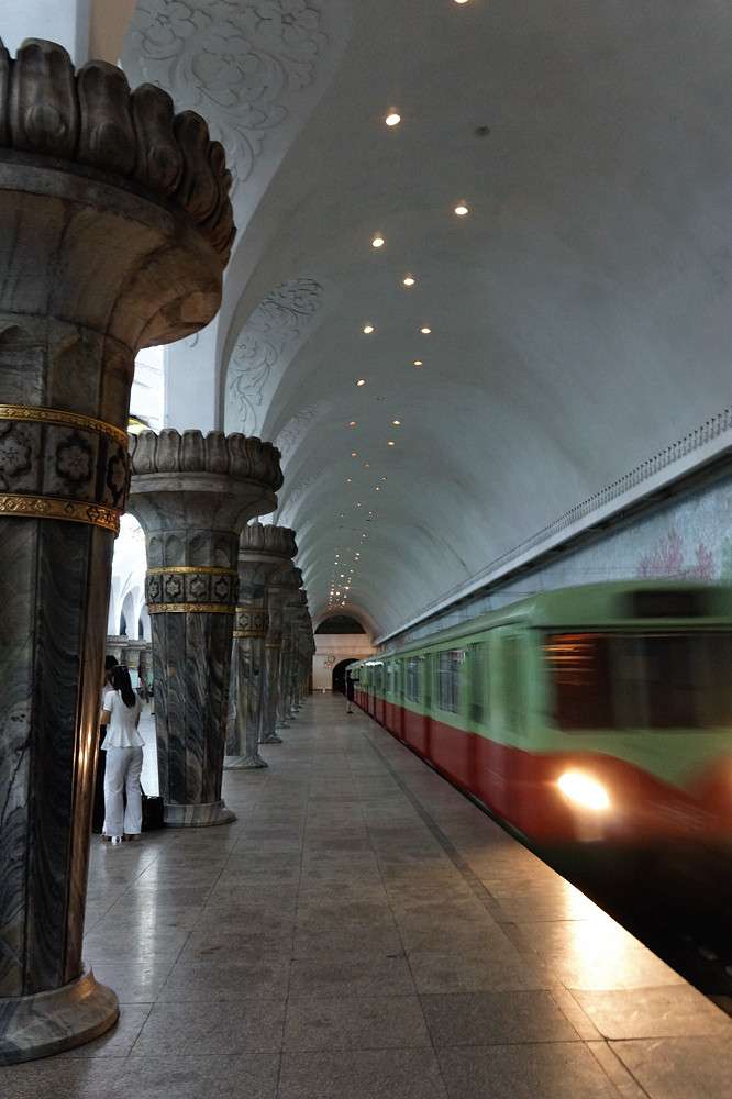 平壤地鐵是在中國的援助下于1968年開始興建的,當(dāng)年北京的地鐵也剛開始動工。1973年剛通車時,地鐵采用的部分車廂還是中國長春客車廠的產(chǎn)品。可以說,平壤地鐵是中朝友誼的又一個見證。現(xiàn)在,平壤市內(nèi)一共有兩條地鐵,呈十字交叉形,貫通全城東西南北,總長40公里,日均客流量達(dá)到40萬人次。